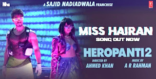 Miss Hairan is a Latest Song From Movie HeroPanti 2, Miss Hairan Song Sung By Tiger Shroff, Nisa Shetty, Music Composed By AR Rahman and Lyrics Are Written By Mehboob, Featuring: Tara Sutaria & Tiger Shroff. Miss Hairan Official Music Video Available On YouTube Channel Of T Series.